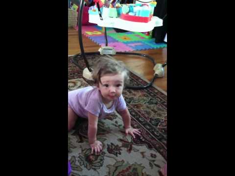 Last night when we were at the braves game Caitlyn started crawling at moms house. She loves this yellow Dora ball and it got her moving!
